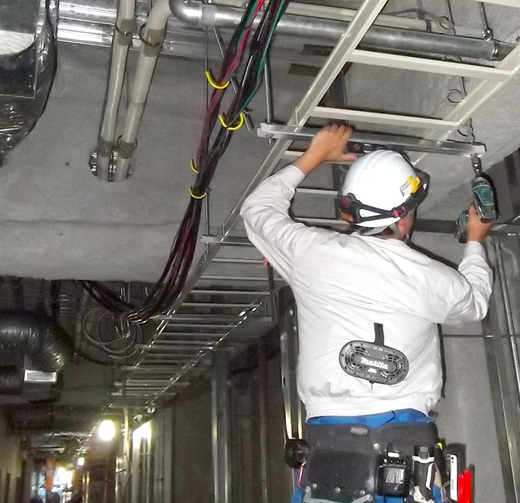 設立後は、九電工の直営技能職としての役割を担い、施工に従事してまいりましたが、その後、技術職社員も採用し、現在においては、首都圏を中心に電気工事業の自主受注にも積極的に取組んでいます。